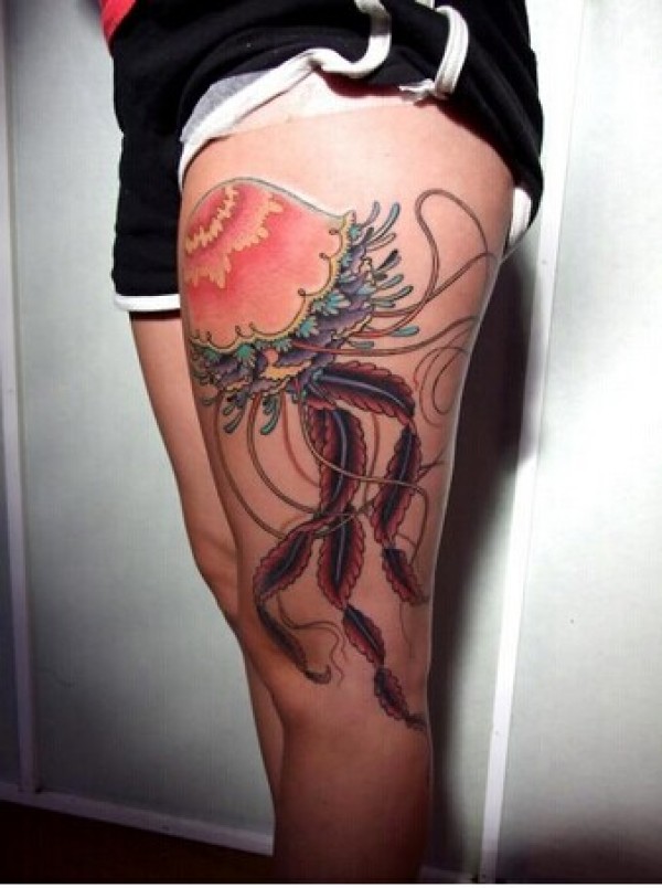 女生腿部漂亮性感的彩色水母纹身图图片