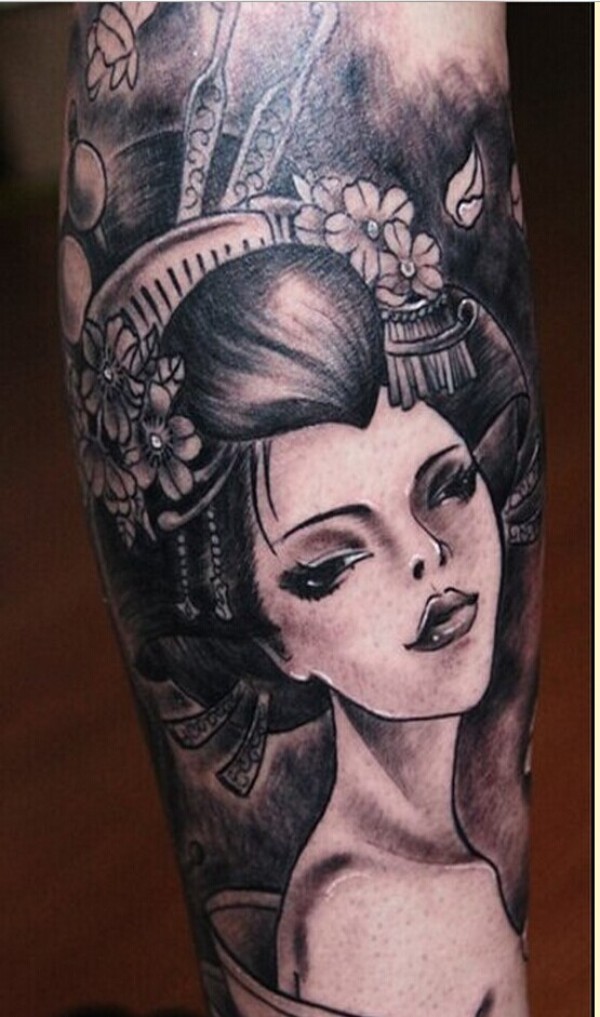 小腿艺妓纹身图案