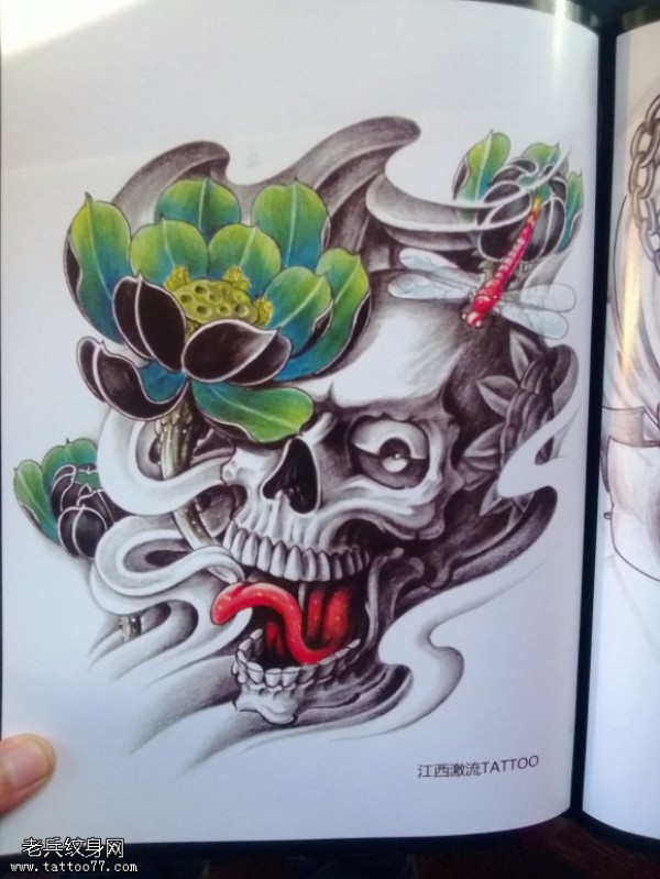 骷髅莲花纹身图吧图案