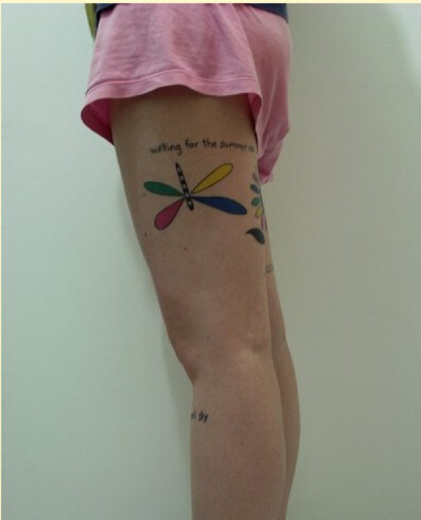 时尚女生腿部漂亮小蜻蜓与字母纹身图图片