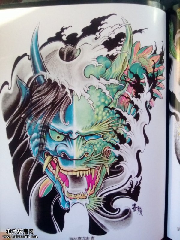 能面万媚纹身手稿_52张日式能剧面具纹身手稿图案素材欣赏