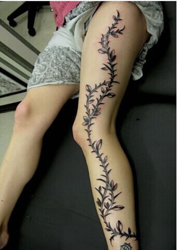 时尚女生腿部长型漂亮好看的花藤纹身图片