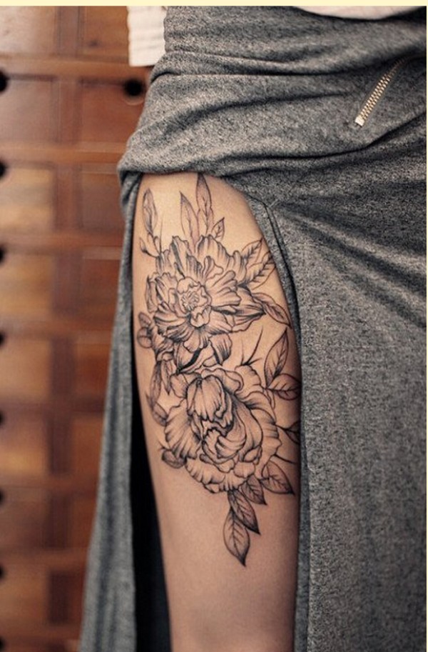 传统花腿纹身--18张传统风格的大花腿纹身图案作品