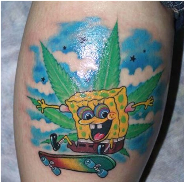 腿部时尚漂亮好看的卡通海绵宝宝纹身图片