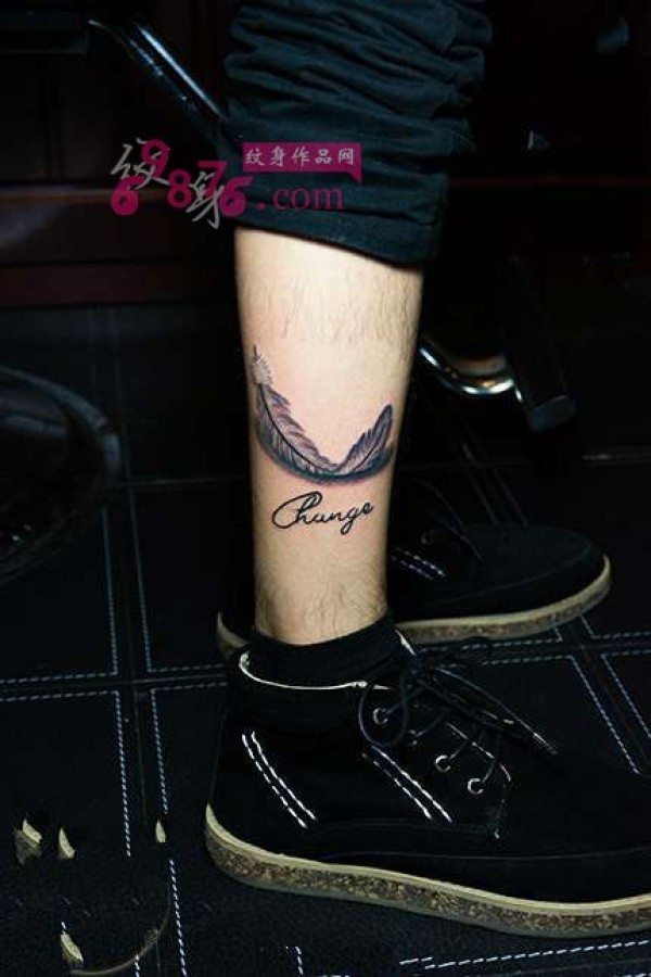 脚踝羽毛文身作品
