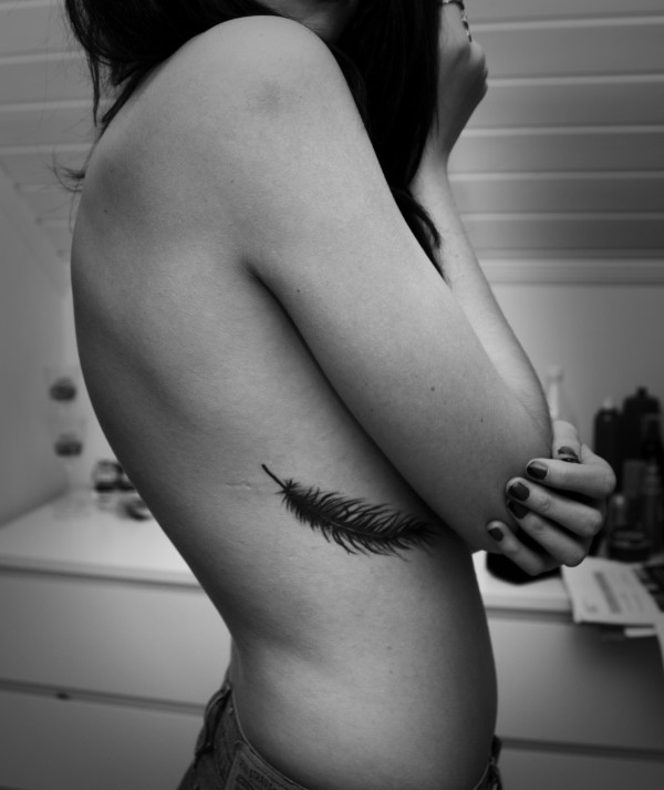肋部漂亮时尚的羽毛纹身
