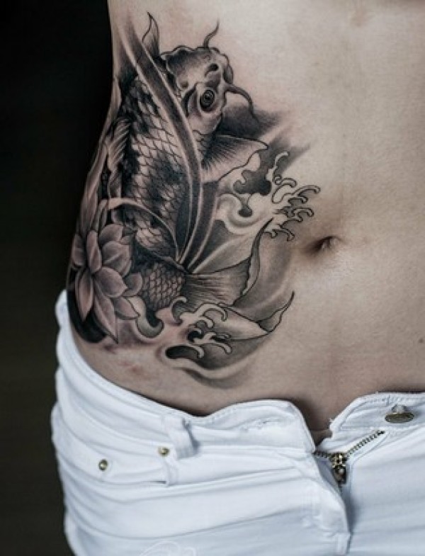 女性腰部莲花花纹刺青_腰部纹身图案大全_纹身图吧
