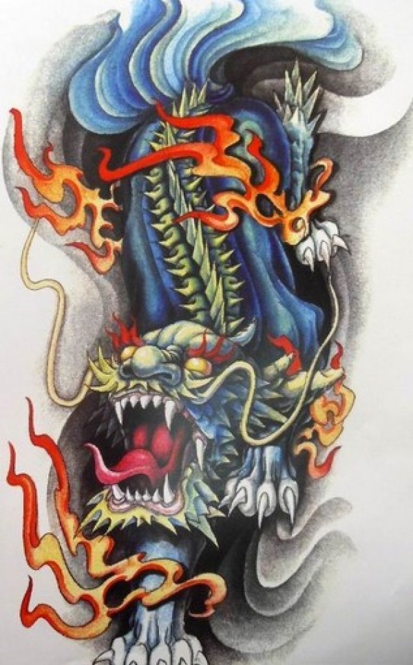 龙纹身手稿_一组老传统黑灰龙手稿纹身图案