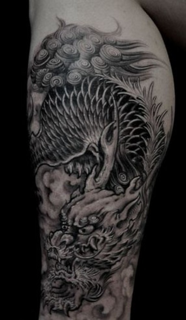 花腿纹身--一组大黑腿纹身图案作品欣赏