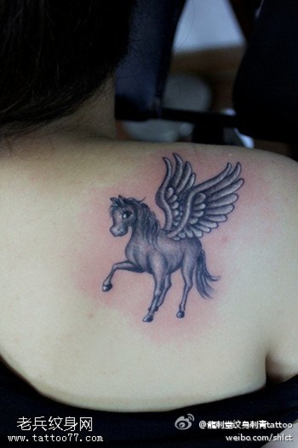 肩部小马双翅纹身图案