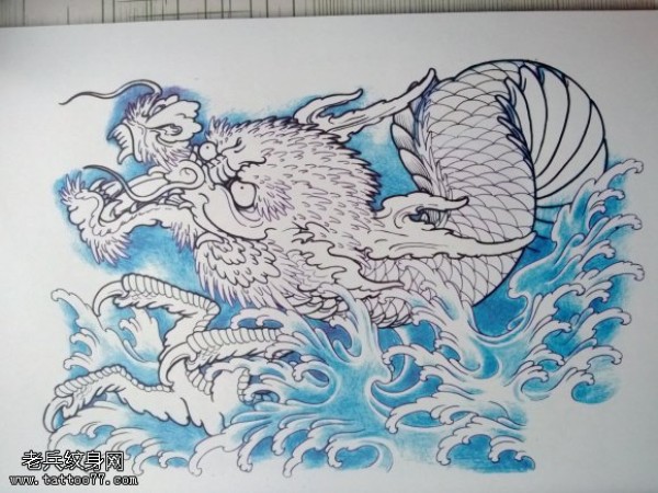 龙纹身手稿_一组老传统黑灰龙手稿纹身图案