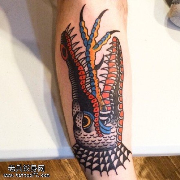 德国恐龙纹身眼镜蛇和卡通鳄鱼纹身水彩动物图案纹身