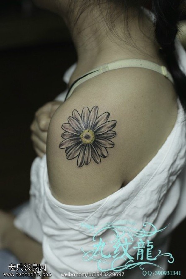 女生肩花纹身_15张女性双肩对称的肩花纹身图案作品图片