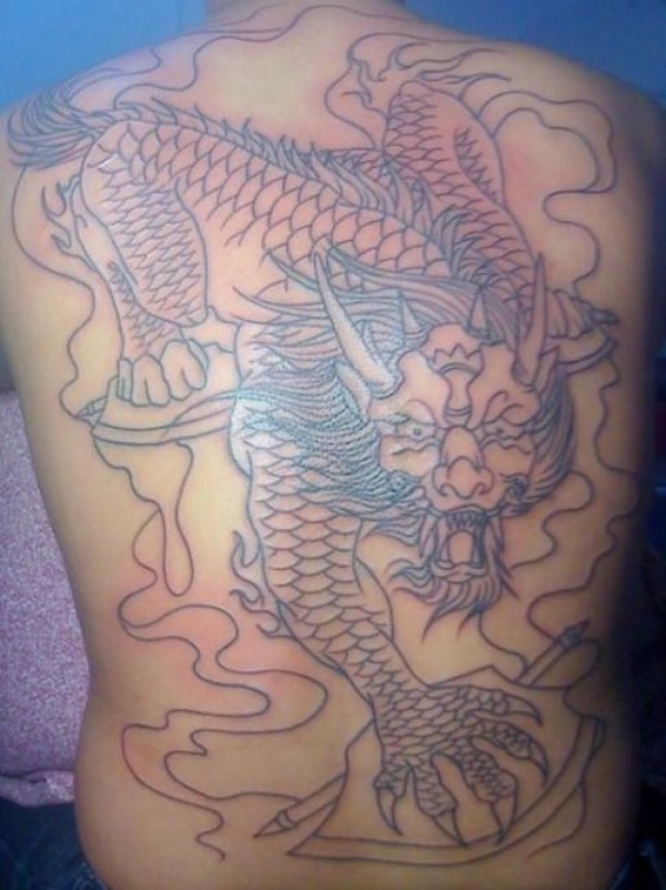 龙纹身手稿_一组老传统黑灰龙手稿纹身图案