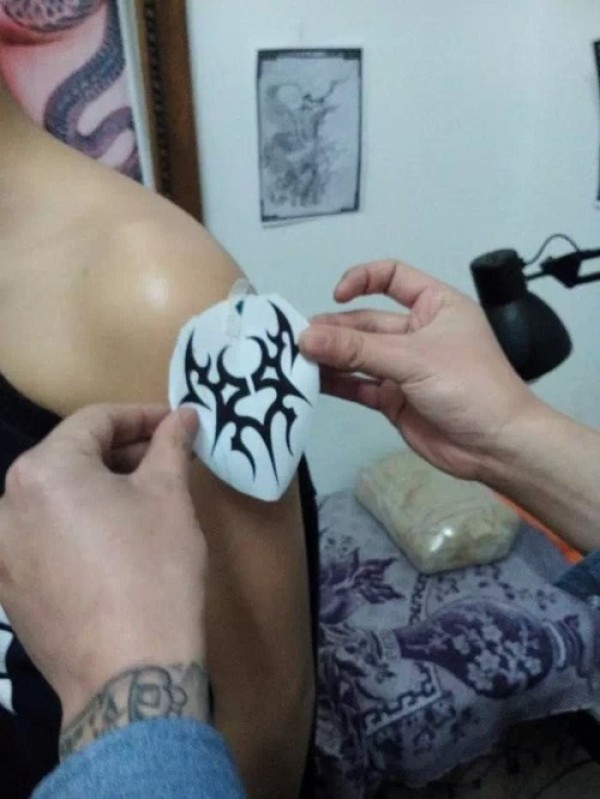 女生肩花纹身_15张女性双肩对称的肩花纹身图案作品图片