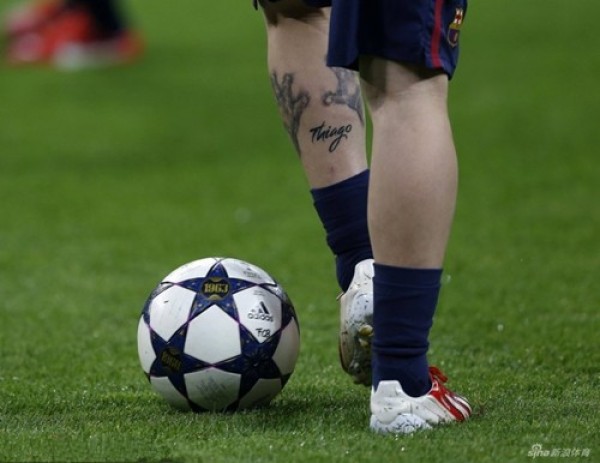 足球健将梅西小腿个性纹身