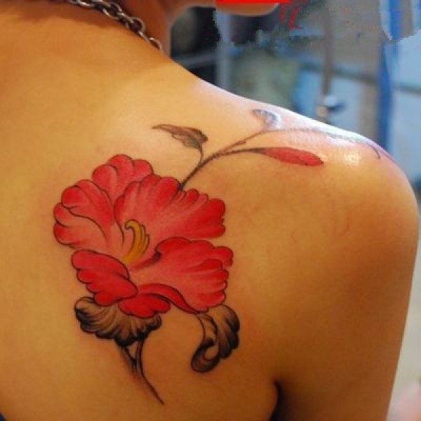 后肩唯美花藤英文图案图片_植物纹身图案大全_纹身图吧