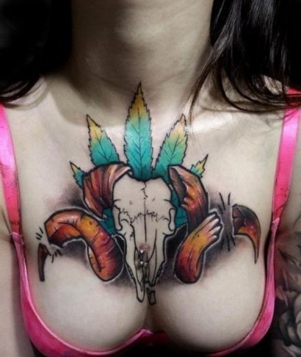 女性大花胸纹身_43张霸气漂亮的女性大花胸纹身图案作品