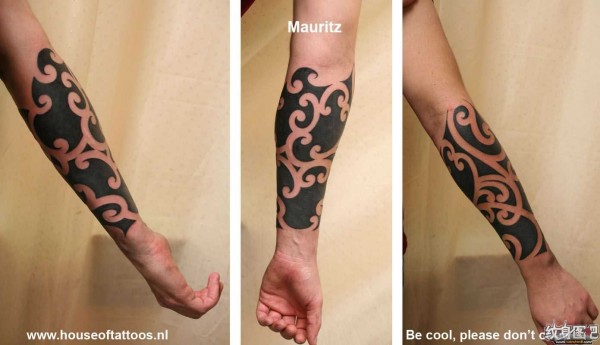 手臂上纯黑色很酷的纹身图案