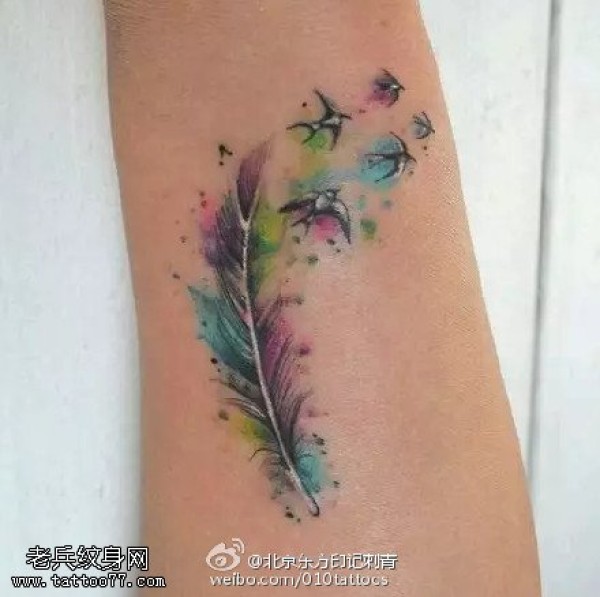水墨风格漂亮的羽毛纹身图案