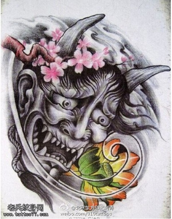 能面万媚纹身手稿_52张日式能剧面具纹身手稿图案素材欣赏