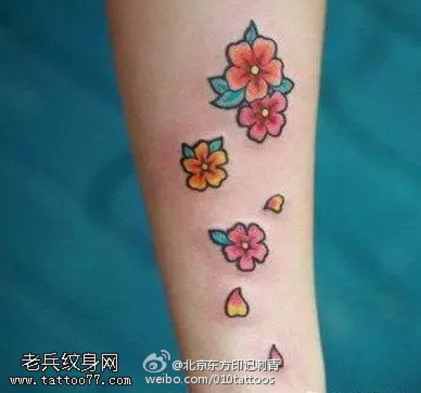 彩绘清爽的樱花纹身图案