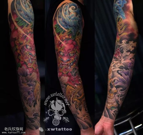 唐狮子花臂纹身图案