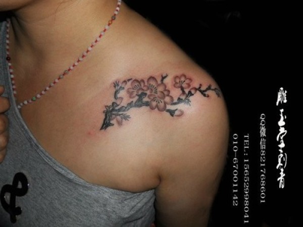 女生肩花纹身_15张女性双肩对称的肩花纹身图案作品图片
