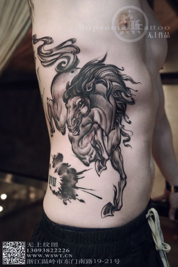 侧腰水墨写实纹身 无上作品