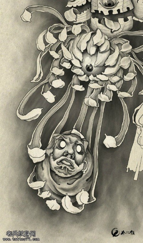 能面万媚纹身手稿_52张日式能剧面具纹身手稿图案素材欣赏