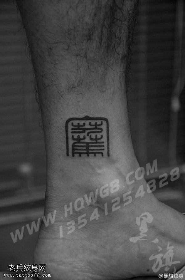 脚腕上的繁体字纹身图案