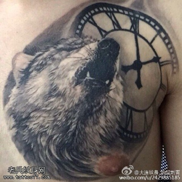 肩部霸气的狼纹身图案