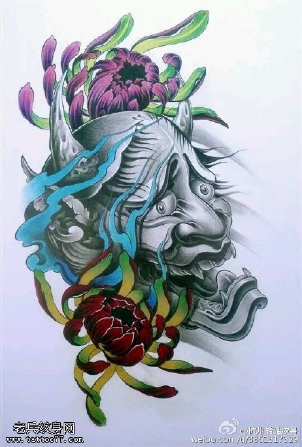 能面万媚纹身手稿_52张日式能剧面具纹身手稿图案素材欣赏