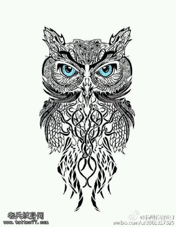 图腾风格猫头鹰纹身图案