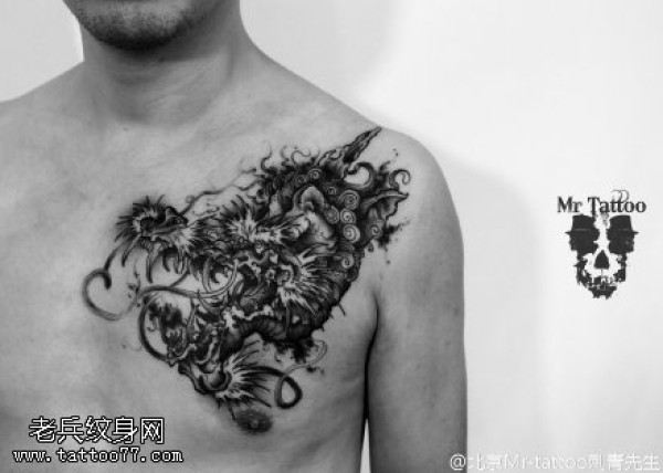 龙纹身手稿_一组老传统黑灰龙手稿纹身图案