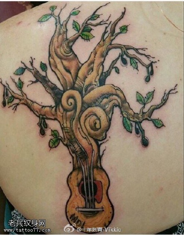 彩绘音乐老树纹身图案