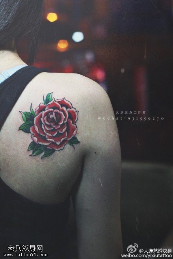 女生肩花纹身_15张女性双肩对称的肩花纹身图案作品图片