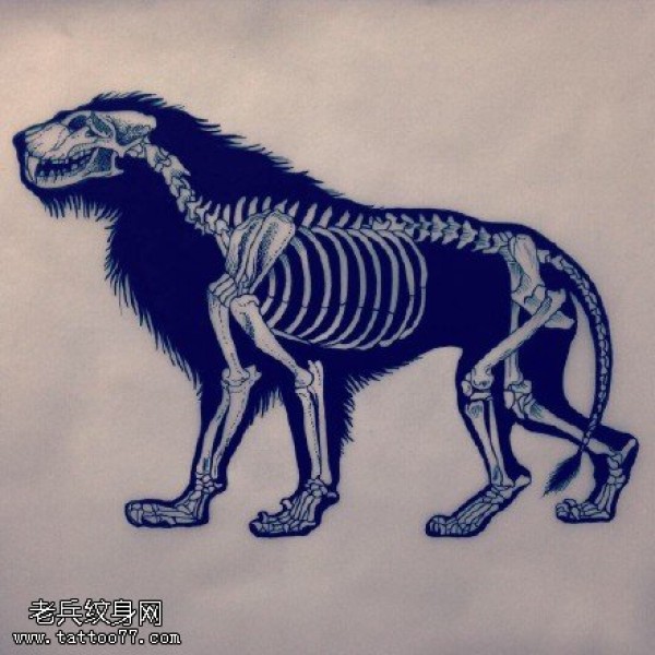 素描狮子骨架纹身图案