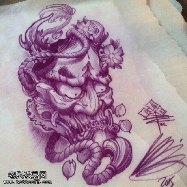 能面万媚纹身手稿_52张日式能剧面具纹身手稿图案素材欣赏