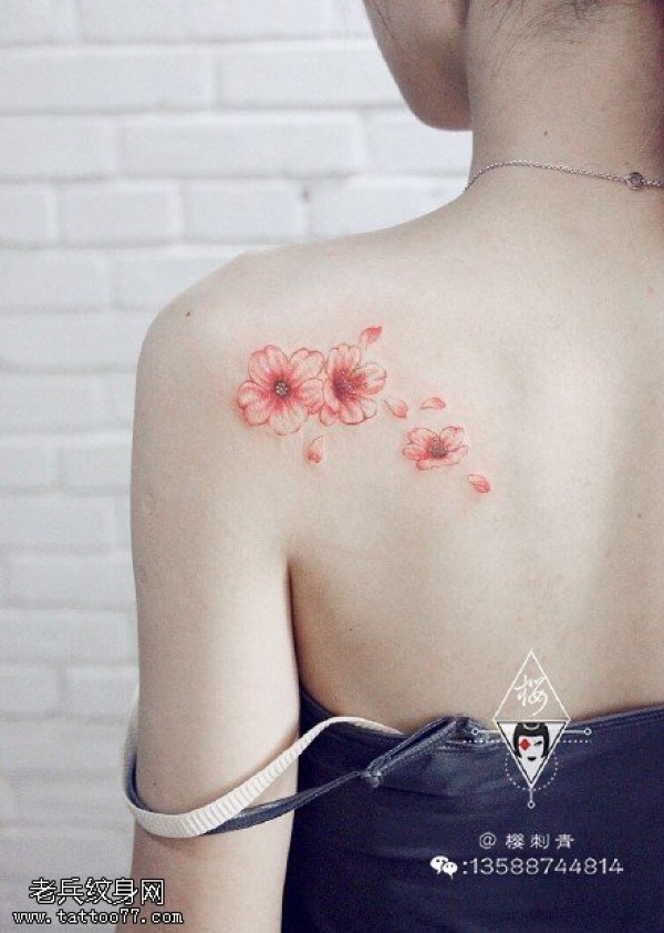 女生肩花纹身_15张女性双肩对称的肩花纹身图案作品图片