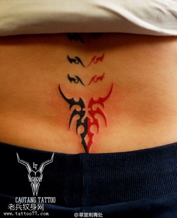 腰部红黑图腾纹身图案