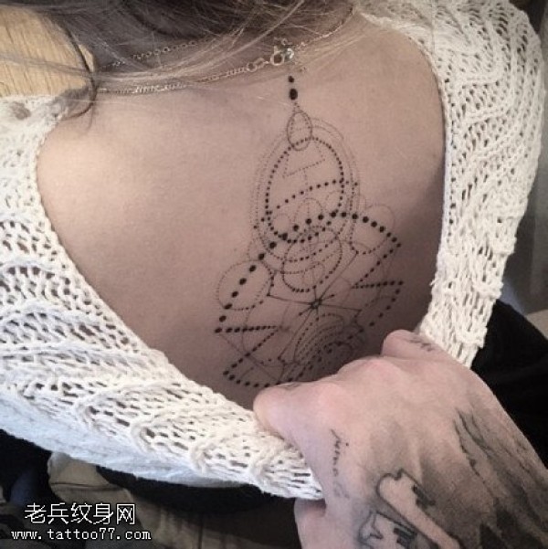 背部点刺几何元素图形纹身图案