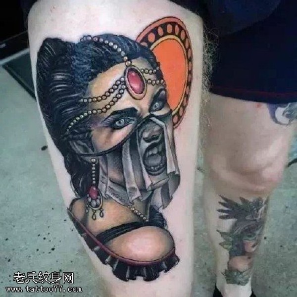 传统花腿纹身--18张传统风格的大花腿纹身图案作品