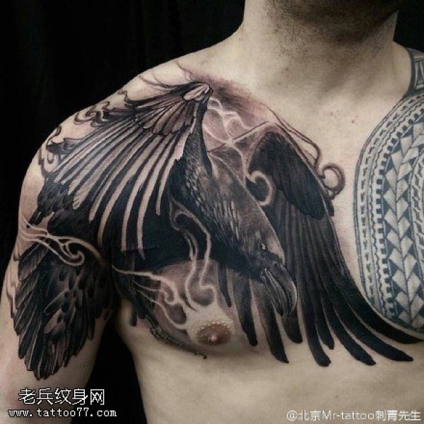肩部老鹰纹身图案