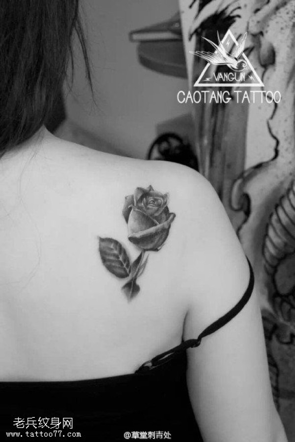 女生肩花纹身_15张女性双肩对称的肩花纹身图案作品图片