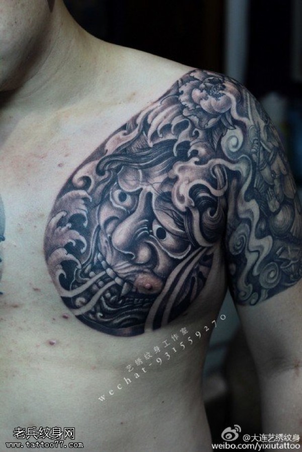 肩膀般若牡丹纹身图案