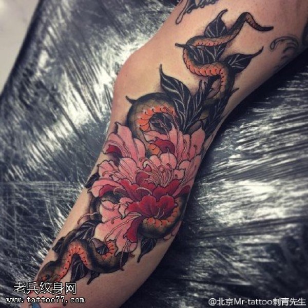 传统鲤鱼花小腿纹身_腿部纹身图案大全_纹身图吧