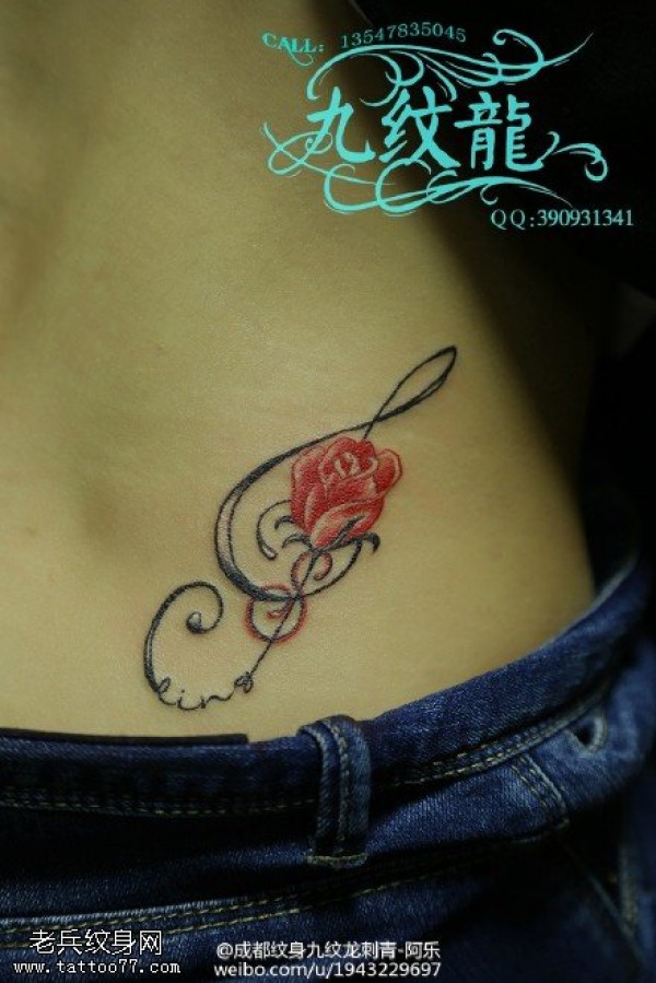 女性腰部莲花花纹刺青_腰部纹身图案大全_纹身图吧