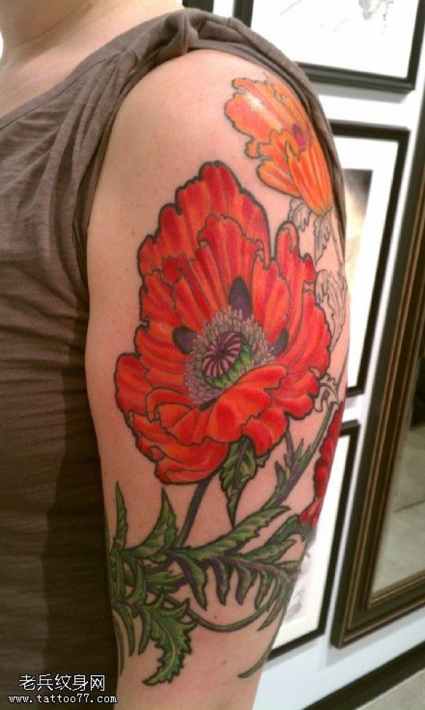 女生肩花纹身_15张女性双肩对称的肩花纹身图案作品图片