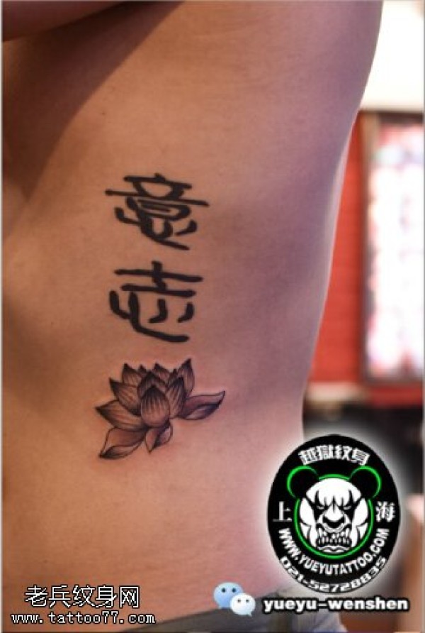中国汉字莲花纹身图案